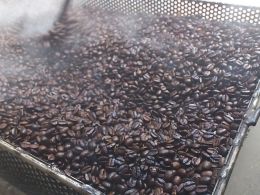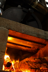 密閉型の釜で焙煎された豆は自分の煙に燻され続けることで焙煎後も独特の風味を保ち続けます。通常のガス式に比べて中の豆の様子も確認し辛く、火力の調整も薪の焚き具合に依るので経験に頼る部分が大きい焙煎方法です。通常の三倍以上の時間をかけてじっくり煎られた豆は芯まで火が通り深い苦みを味わうことができます。